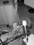 Nach der Begrüßung und Kurzbesichtigung des Studios wurden wir uns schnell einig, dass es eine Gesamtaufnahme werden sollte. Also kam eine Gitarre nach der anderen dran - zwei hatte ich dabei. Zu guter Letzt ging ich "fremd" und spielte auf Robby's zwölfsaitiger Yamaha, denn sie hatte den besten Unplugged-Klang für die Aufnahme. Interessant war mein "Sitzmöbel", denn da der Drumhocker zu hoch war, saß ich mitten im Aufnahmeraum mit der Gitarre auf dem Schoß auf einer Cajon! |